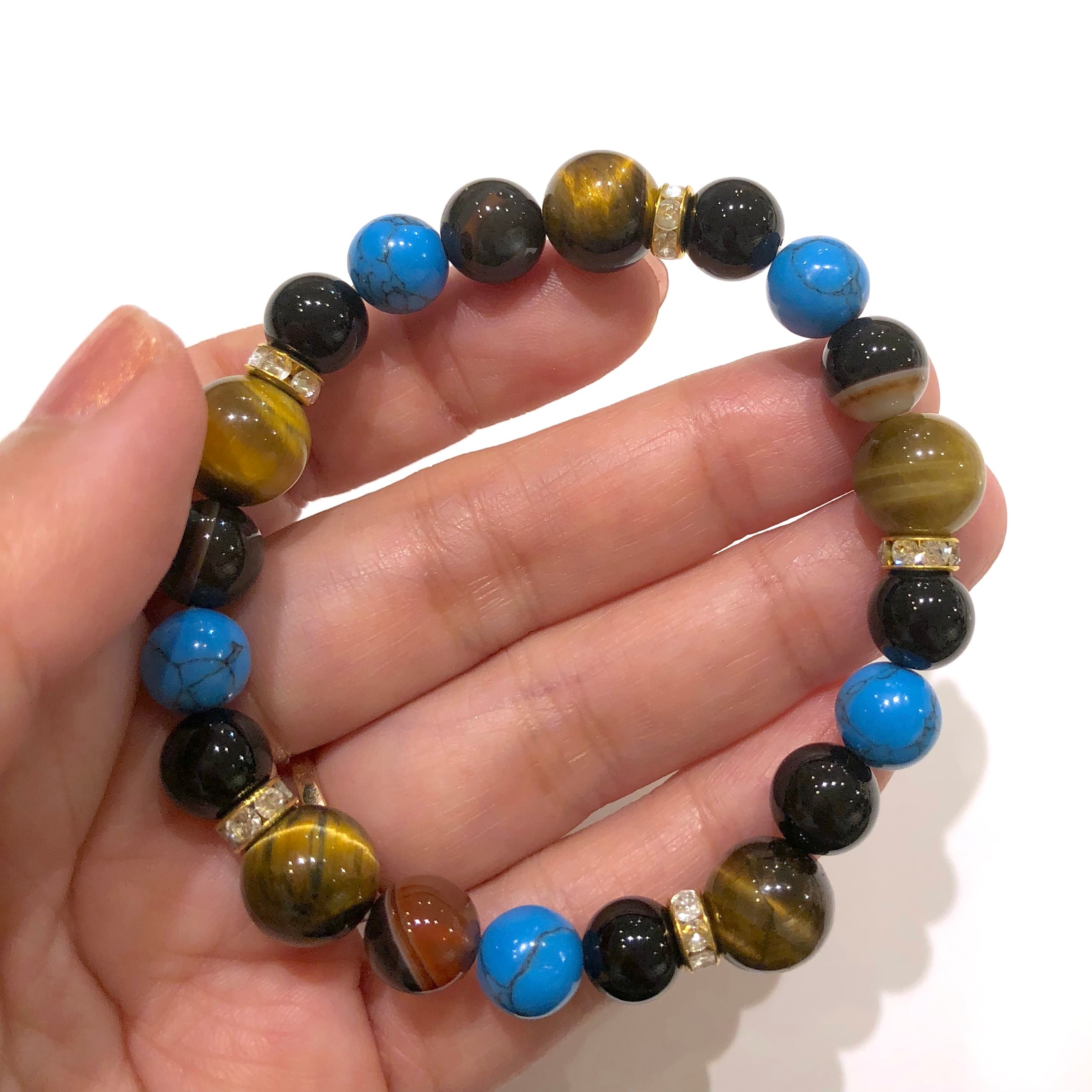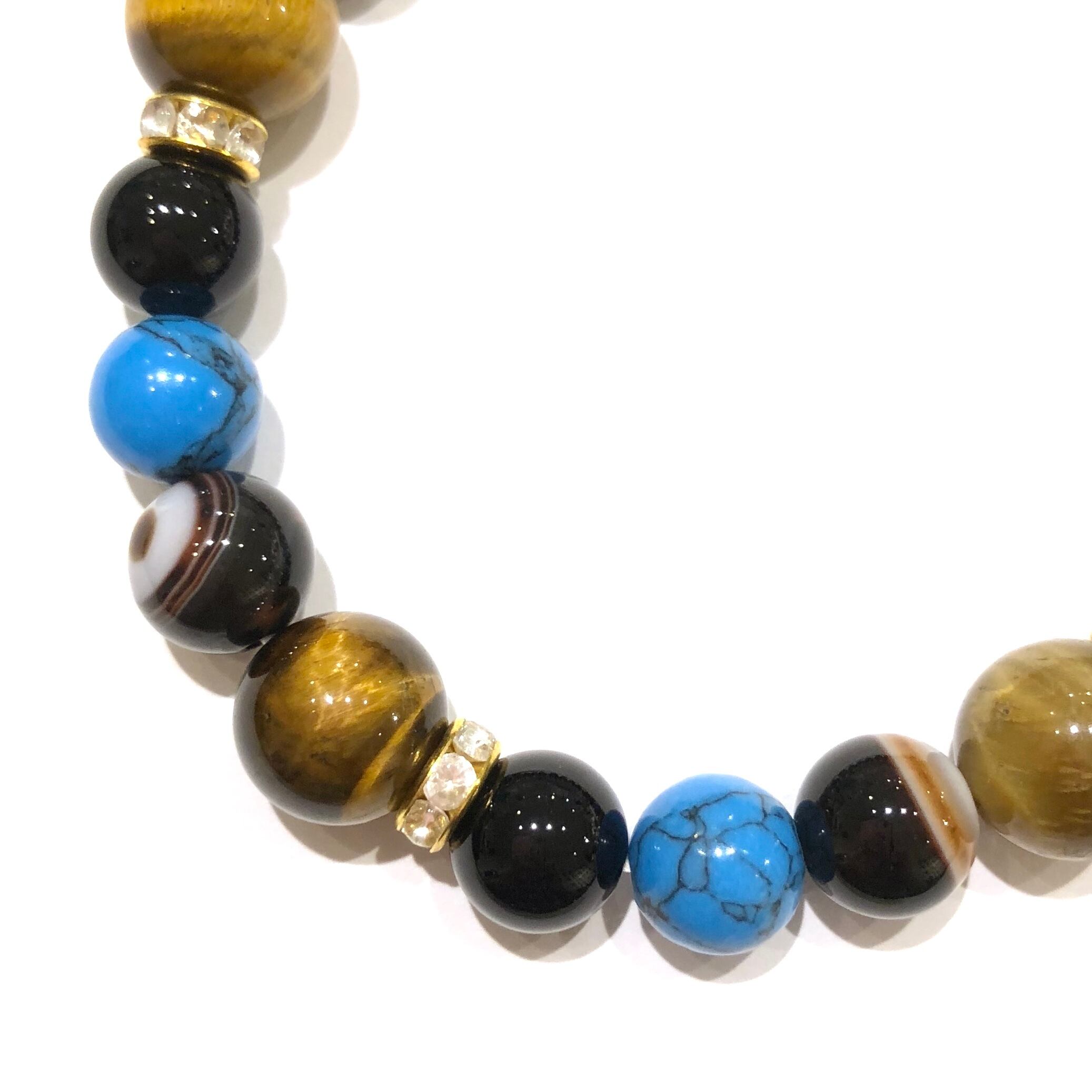 L206●タイガーアイターコイズオニキス茶縞瑪瑙ストーンブレスレット天然石数珠
