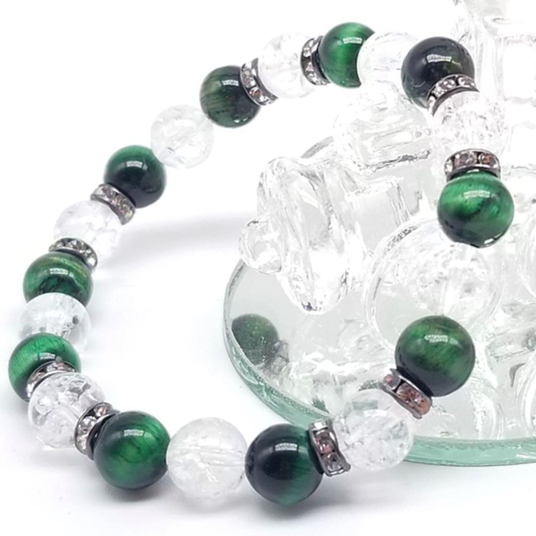 L233 8mm グリーンタイガーアイ 水晶 天然石ブレスレット パワーストーン